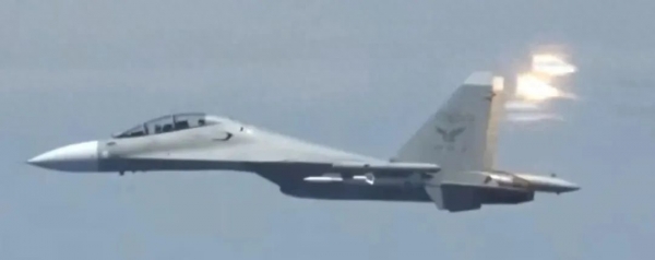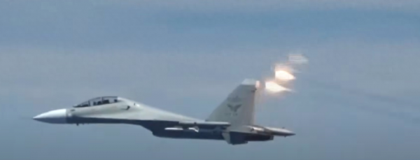 美国防部发布的"中国战机发射干扰弹"画面 视频截图