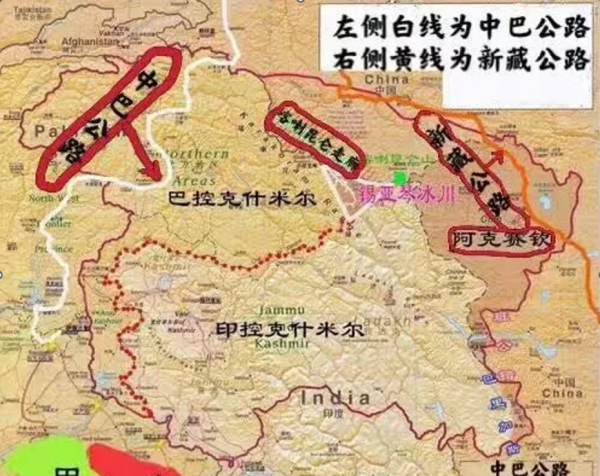 不只是如此,喀喇昆仑走廊、阿克赛钦、巴控克什米尔形成三角之势。