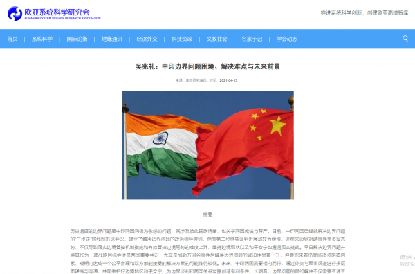 信息来源:欧亚系统科学研究会 2021-04-13--《吴兆礼:中印边界问题困境、解决难点与未来前景》