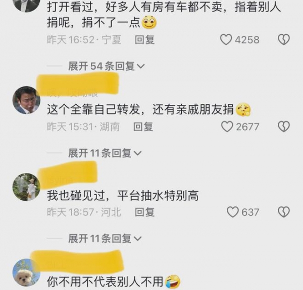 还有网友说,这个水滴筹其实很大一部分是通过卖惨来筹钱的。一般善良的人,家里条件还可以的,都不会去平台骗人。
