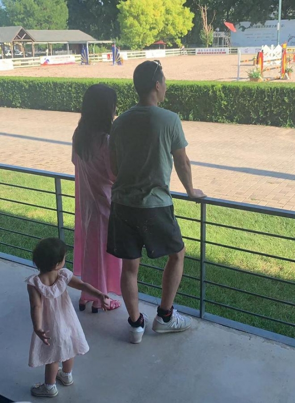 另一张图中,一家三口在马场旁观看,王昀佳爱已经换上了自己的便服。两人站在一块儿看风景,女儿则独自站在身后,网友调侃称爸爸妈妈是真爱,孩子是意外。
