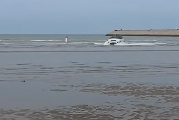 当时海边有很多小孩子,万一海里涨潮就太危险了。所以提醒外地游客,千万不要把车开进沙滩,更不能开进海里,避免发生意外。