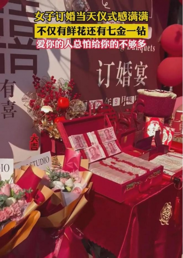 10月30日,河南,一段女子订婚38.8万彩礼,七金一钻仪式感满满的视频引发关注。网友吐槽,这样看来,在农村养女儿真划算,女儿出嫁之日,就是发家之日。