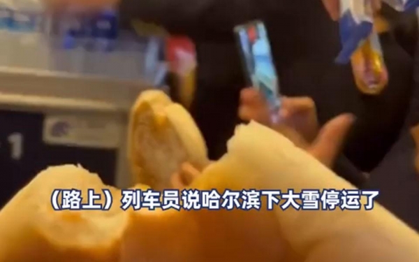 11月6日,在吉林延边,曹女士乘坐去往哈尔滨的高铁时,遇到列车因暴雪在敦化站停运,列车员为车上乘客免费发放食物和水,乘客也是有序拿取,全程没有吵闹。