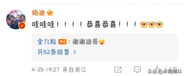 她的好友们也第一时间前往评论区祝福,其中杨迪特别搞笑的评论:哇哇哇!!!!恭喜恭喜!!!金靖也是十分温柔回复感谢杨迪。