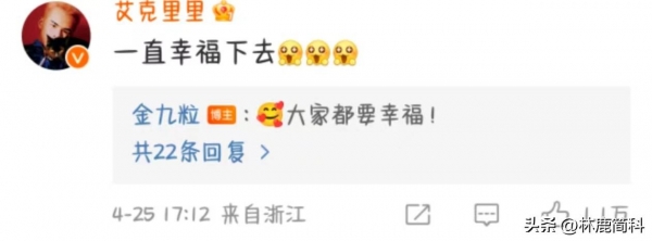 以及还有艾克里里评论祝福金靖要一直幸福下去,金靖也回他说大家都要幸福!从中可以看出金靖和朋友相处的非常融洽。