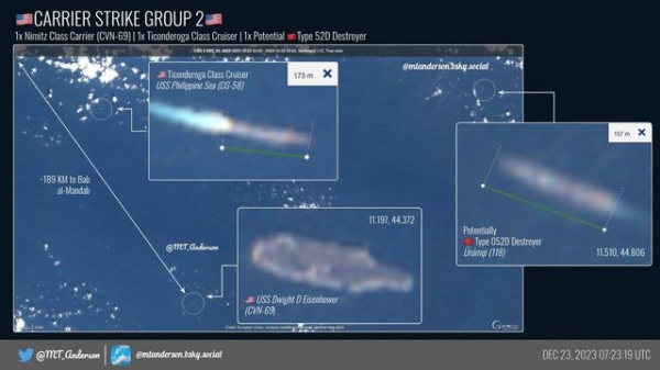 与此同时,据外媒报道,中国的052D导弹驱逐舰也在亚丁湾执行任务,并且位于美国海军CVN69艾森豪威尔号航空母舰附近。外媒甚至公布了美国海军航空母舰和解放军052D导弹驱逐舰同框的卫星照片。这种中美两国军舰在同一海域的接近,可能被视为美军对解放军的一种警告,尤其是考虑到解放军拥有能够打击海上移动目标的弹道导弹。