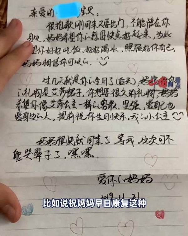 小叶说,妈妈生前就经常和自己互写一些书信互动。现在看到这些留言里满满的都是妈妈对自己的期盼和不舍,"看到这些备忘录,觉得很悲伤很痛"。
