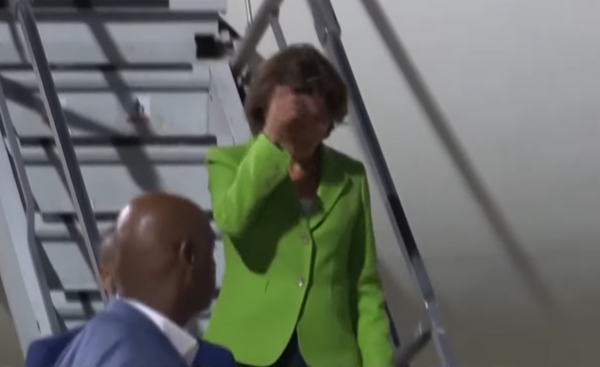 从现场画面可以看到,雷蒙多一身绿色西装,在夜色下显得十分抓眼。自信迈下扶梯的雷蒙多,却似乎低估了北京的夜风,刚出机舱就被吹乱了发型,虽然雷蒙多已经尽力整理,但直到与林峰司长握手时,还是有一束头发倔强地飘在了眼前,让雷蒙多的形象略显狼狈。