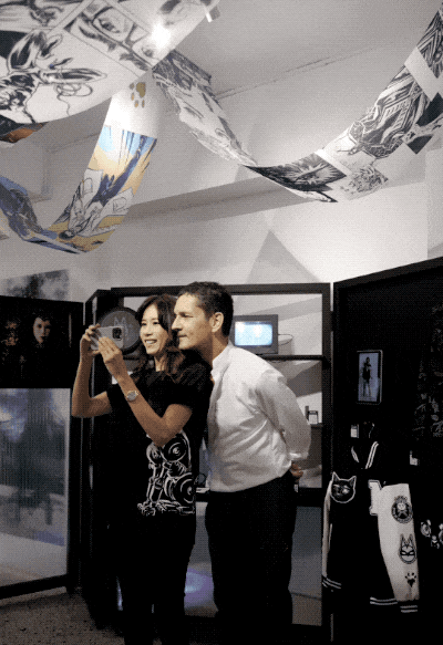拍摄当天,莫文蔚的先生Johannes来画廊接莫文蔚"下班"