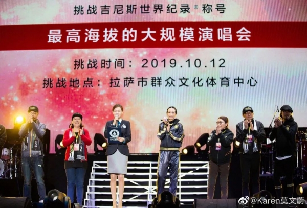 2019年11月12日,莫文蔚的西藏演唱会创造一项新的吉尼斯世界纪录