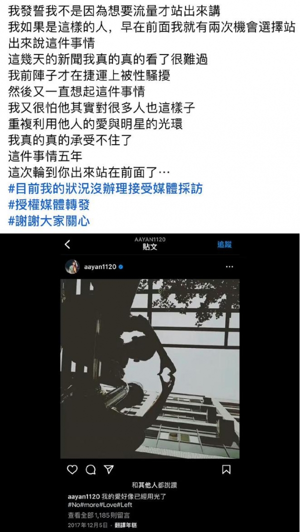 最后邱耀乐表示,自己不是为了流量才出来讲,只是近几天看到MeToo风波后,加上又在搭乘捷讯被性骚扰后才决定不再隐忍,五年了,他真的承受不住了。