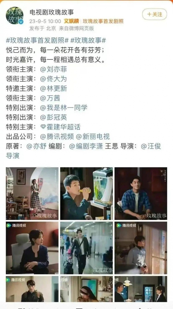 9月11日消息,近日由刘亦菲主演的电视剧《玫瑰故事》首发剧照并官宣了全阵容。
