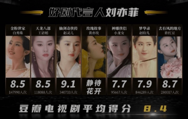 但在电视剧方面她又是好剧代言人,电视剧平均得分高达8.4分。