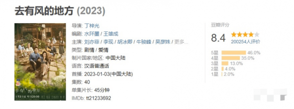 该剧豆瓣也给出了8.4分的高分,80%的人为该剧给出了4星和5星的好评。