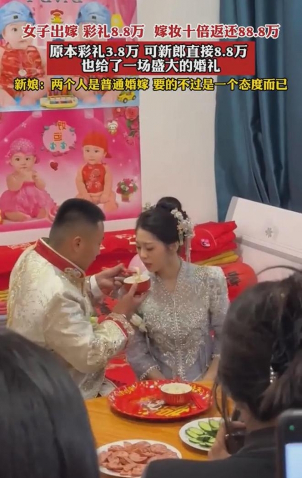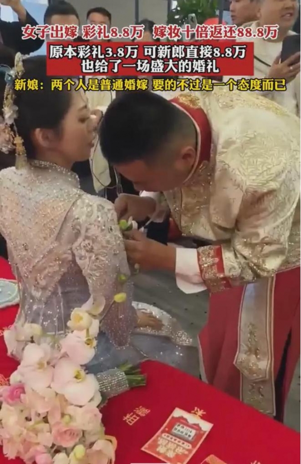 11月9日,山东,一段男方出彩礼8.8万,女方十倍返还的视频引发关注。网友说,娶到这样的新娘真幸福,两人是真爱无疑。