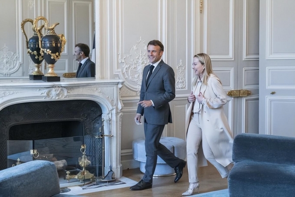 法国总统马克龙与意大利总理梅洛尼举行会见