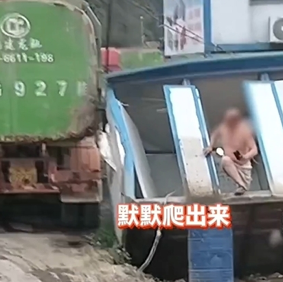就在大货车撞倒厕所后,一位大爷一脸惊恐的推开厕所门,确认周围无异常情况后赶紧跳了出来,还以为是地震了。
