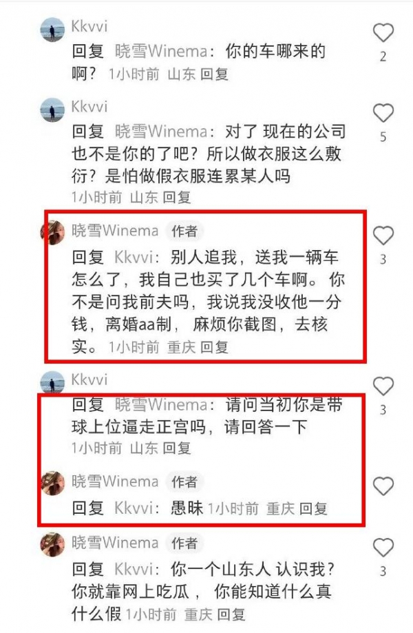 晓雪承认自己收过追求者送的豪车,但否认靠男人发财,她表示自己的经济实力与前夫相当,离婚时也是AA制。