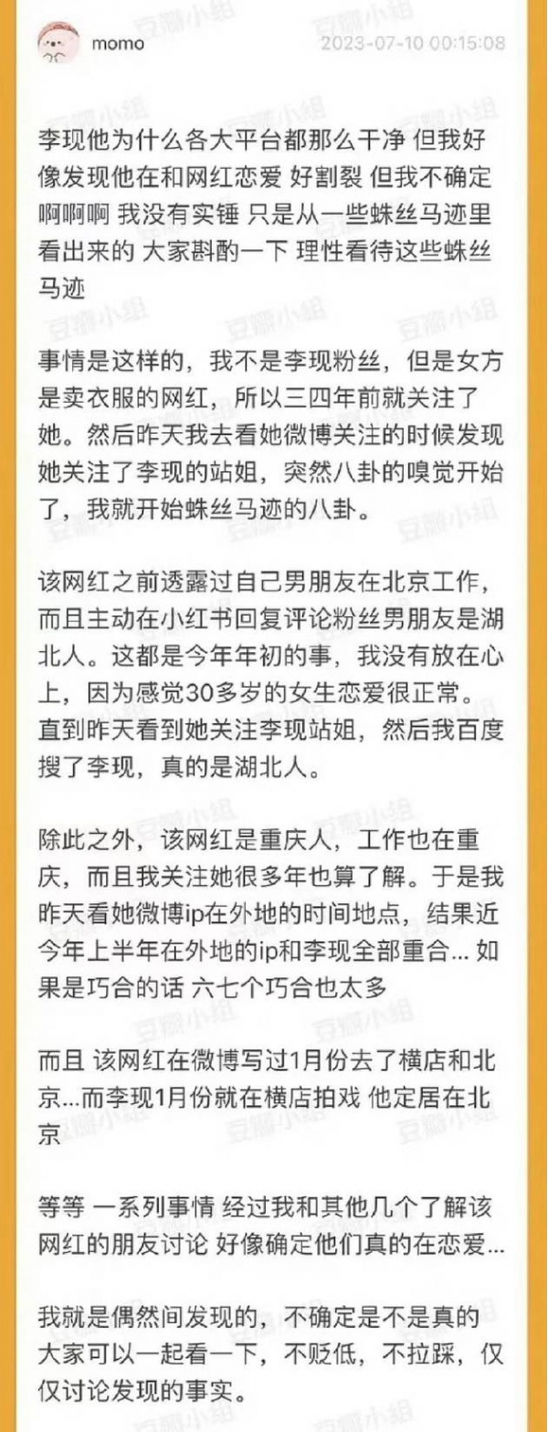 李现与晓雪的绯闻,在今年7月发酵,有网友声称发现二人关系匪浅。