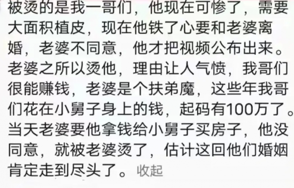 反转了?开水浇丈夫事件疑因妻子对娘家经济支持