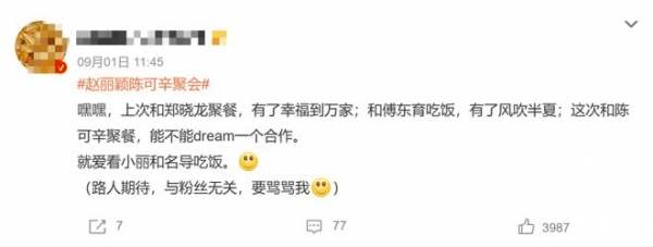 此前,近期也有娱记拍到了赵丽颖和《酱园弄杀夫案》的监制陈可辛一起聚餐的画面,娱记表示聚餐过程中两人相谈甚欢,还预言"此次接触想必后续会有合作上的大动作吧"。