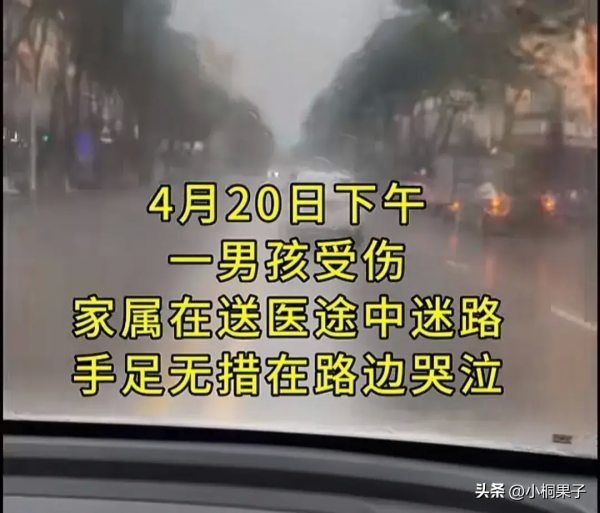 4月20日下午,下着大雨,一名女子披着雨披,骑着电车急匆匆送受伤的孩子去医院,但是急中生乱,在雨中迷路了,这位妈妈手足无措地在路边大哭。