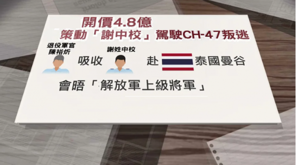 报道还说谢中校在今年6月便与大陆有过接触,大陆指示他在解放军航母接近台岛24海里军演时,驾驶直升机直接降落解放军航母甲板。但谢中校认为风险太高,直到大陆将报酬提高至1500万美金,并承诺先付100万至200万美元订金,谢姓中校才答应。