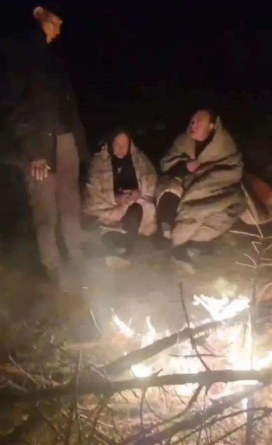 屋外烤火取暖。图源:极目新闻