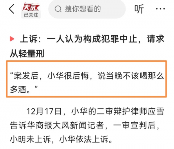 某华后悔当晚喝了太多的酒,以至于做出了这样的不耻之事。