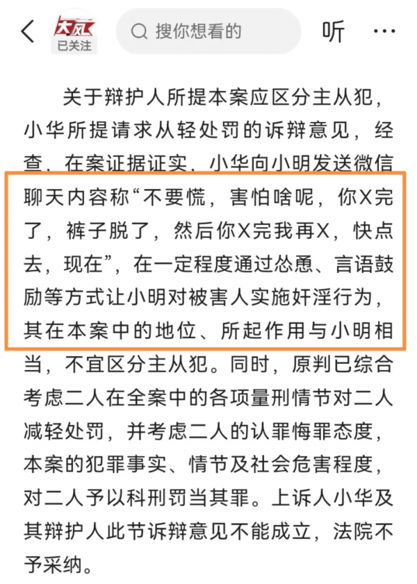 令人震惊的是,某明与某华通过微信相互怂恿对方,意欲对小芳实施不轨行为。