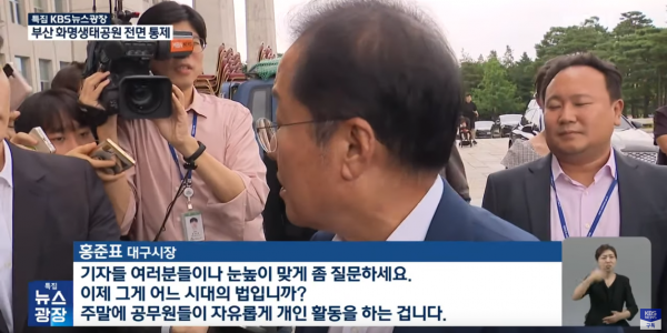 他怒怼提问记者,表示大邱没有发生灾情,并且全市已经做好了充分应对水灾的各项准备工作,所以他有打球的自由,"韩国并没有公职人员周末不能打高尔夫球的规定,除总统以外,公职人员周末都是自由的,除非有紧急工作在身。"