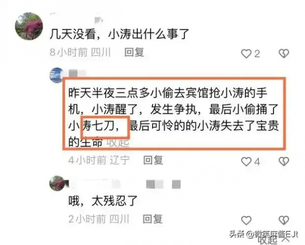 据目击者称,事发当天,小涛的手机在街头被盗。在追赶盗窃者的过程中,小涛与盗窃者发生了扭打。在扭打过程中,盗窃者手持刀具,将小涛捅伤。尽管附近民众迅速报警,但小涛因伤势过重,不幸离世。