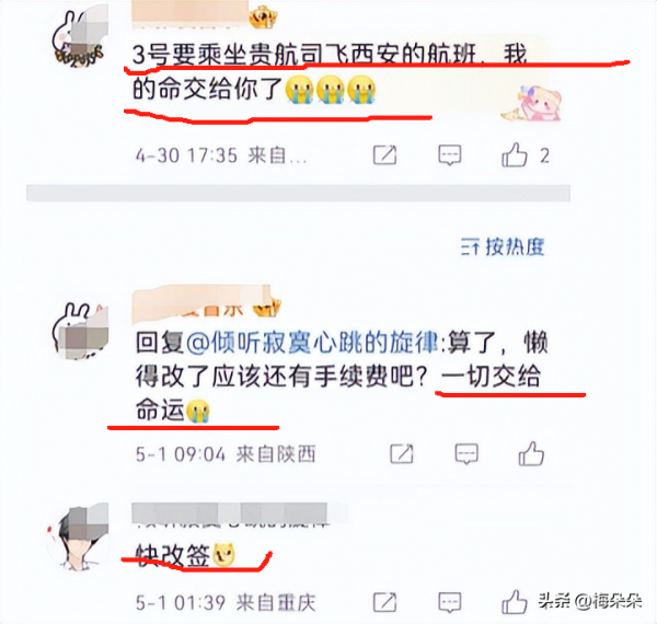 甚至有一个陕西的网友特别担心地说到,3号就要乘坐东航飞西安的航班,我的命都要交给你们了,还特地发了三个流泪的表情,有网友建议该网友赶紧改签。