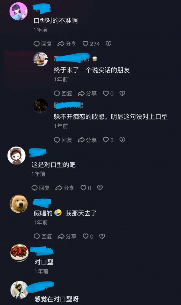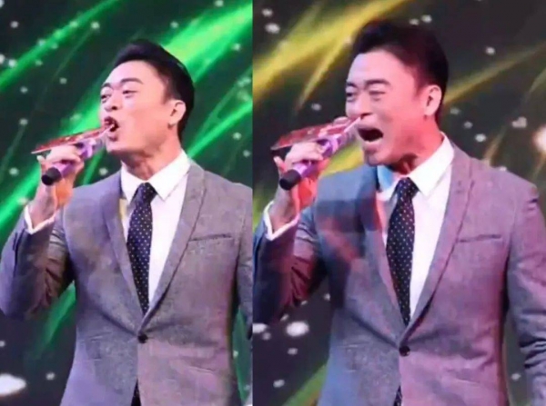 在多个网友实拍的视频里,可以看到樊少皇唱歌时嘴唇的动作很夸张,唱到副歌部分时嘴巴大幅度地不断开合、变形,有时甚至用力噘起嘴唇,仿佛怕别人知道他不是真的在唱。大家可以感受一下,嘴巴张得那么夸张其实根本不好发音,所以周华健真唱的时候,嘴巴动作幅度并不大。