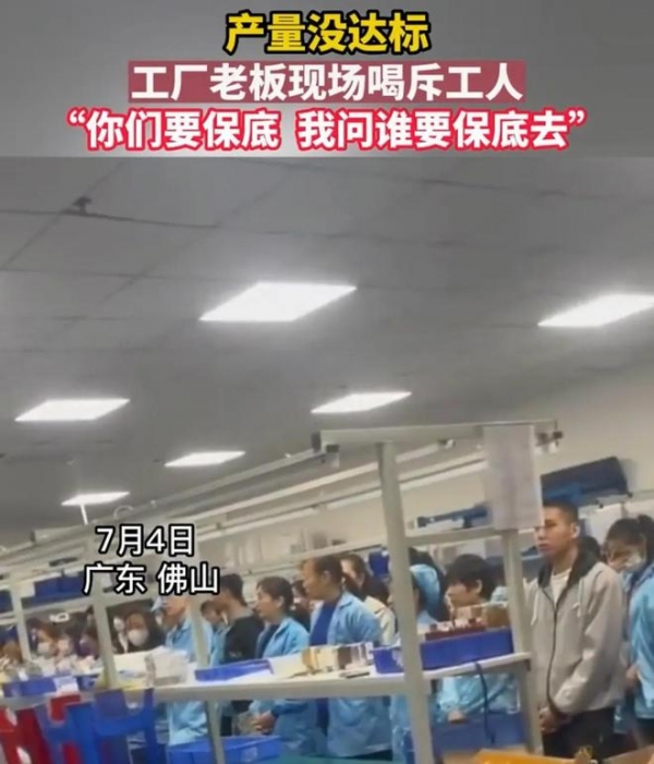 7月4日,广东佛山,一段产量不达标,老板呵斥员工的视频引发关注。网友看后,吐槽说,赚钱不见得你给员工分点,赔了钱,给员工讲情怀,老板不好当,就别当了呗。