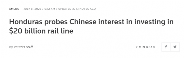 路透社:洪都拉斯想了解中国对200亿美元铁路建设项目的投资兴趣
