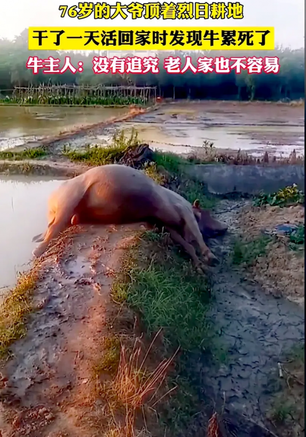 在回家的路上,借来的牛却突然倒地不起了,当时王大爷可是"吓傻了",当他想看个究竟时,这头牛口吐白沫,浑身发烫,很快就没有气了,牛大爷这时候才心里明白,自己为了省钱把牛赶了一整天在耕地,加之天气太热,导致牛被活活累死了,这可如何是一好啊!