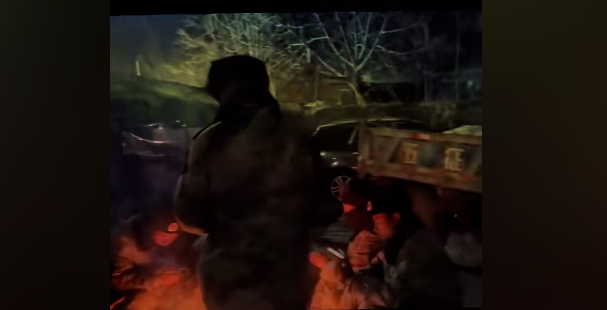 12月20日晚8点,记者看到解放军在救灾帐蓬外生火取暖。记者问为什么在外头?他们说:"帐篷是给老百姓搭的"。