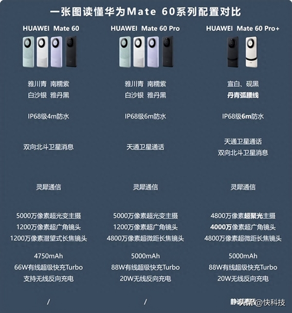 那华为Mate 60 Pro+和之前已经开售的华为Mae 60、Mate 60 Pro配置有何区别呢?