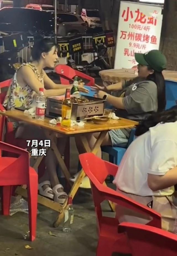从网友的分享可以看出,当时他也在这个大排档吃饭,距离他不远的地方是两位美女,看样子应该是闺蜜。他们点好饭菜以后,还要了啤酒。