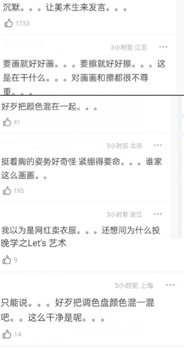 另外一张估计是想要制造出一种情境感,所以让杨幂拿着画笔假装作画,只是杨幂根本没有融入感,挺胸强凹造型又费力又充满浓浓的网红风。引发网友花式吐槽:还以为网红在卖衣服。还有网友认为谁会凹这种姿势,并穿成这样画画,毫不尊重美术生。