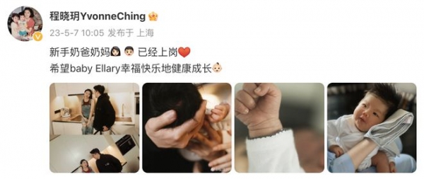 程晓玥在今年4月诞下女儿,5月官宣孩子出生,直接晒出胖豆的正面照。