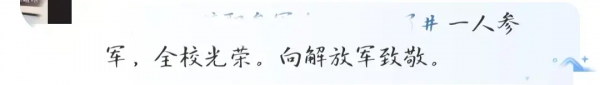 还有网友羡慕的说: 一人参军,全校光荣。向解放军致敬。