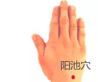 阳池穴在人的手背手腕上(如上图)。寻找的方法,先将手背往上翘,手腕上出现几道皱褶,在靠近手背那一侧的皱褶上按压,这个痛点就是阳池穴。阳池穴是支配全身血液循环及荷尔蒙分泌的重要穴位。只要刺激这一穴位,便可迅速畅通血液循环,温和身体。冬天不妨试试,每天数次,暖和一天。