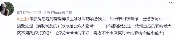 但是不可否认,王冰冰的恋情还是对她本人造成了一定影响,譬如按照原定行程,她本应该在7月下旬参与海南消博会,可直到活动结束,都没能看到她的身影。