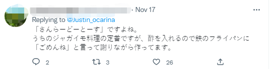 "啊啊啊啊!20年前,从中国东北回来的很会做饭的阿姨给我做过,超怀念……虽然原料用得很少,但是非常好吃,现在偶尔也会做。"