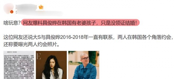 这名网友首先怒骂大S具俊晔不要脸,竟然敢一直声称两个人都没有出轨,还是是汪小菲离婚后联系的,这简直就是胡扯。这名网友随后就指出具俊晔其实在韩国还是有老婆孩子的人,只是一直没有结婚。