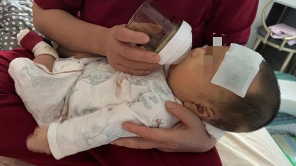 10月21日,米静仍在发烧的孩子,正在喝奶。受访者供图