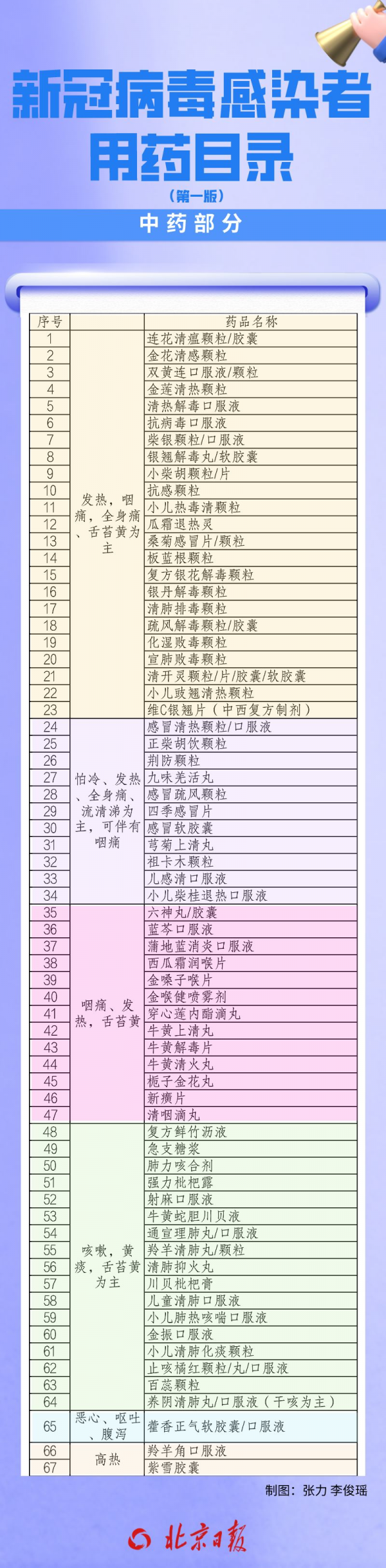 最近,有不少市民购买的药物主要集中在"连花清瘟""布洛芬"等国家第九版诊疗方案中推荐的几个有限的品种上。为此,多位药学、临床、中医专家,结合北京市的气候特点,参考本轮疫情用药实际,论证了《新冠病毒感染者用药目录(第一版)》,现推荐给社会公众。